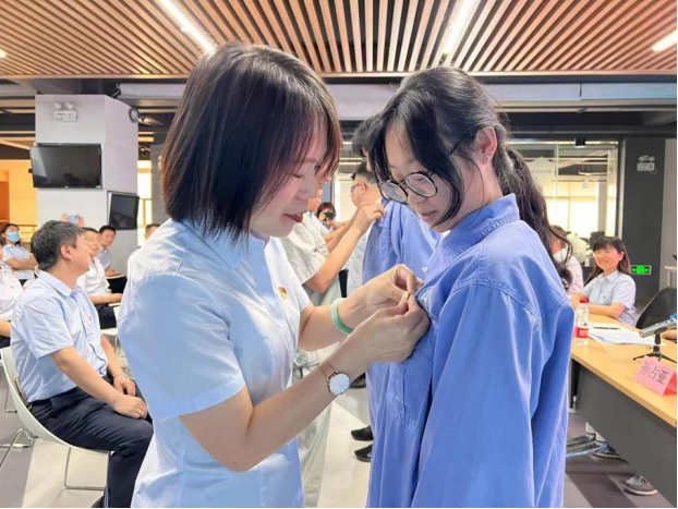 新党员代表魏啸桐代表全体新入党的预备党员进行了表态发言。他表示,今后一是要牢记宗旨,不仅在组织上入党,更要在思想上入党;二是要积极发挥党员先锋模范作用,始终保持奋发有为的形象、奋力争先的姿态、奋勇向前的气魄,投入到今后的工作和学习中来。随后,在场的老党员代表为新党员佩戴、配发党徽。