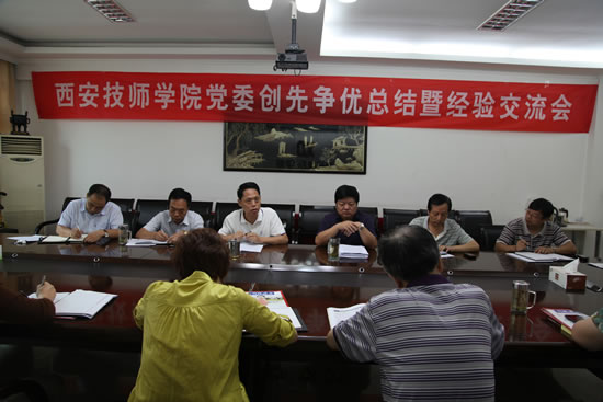 为贯彻中央确定的“推动科学发展、促进社会和谐、服务人民群众、加强基层组织”的总体要求,在党的基层组织和党员中深入开展创先争优活动,进一步激励基层党组织和广大党员立足岗位争先进、创优秀,进一步推进创先争优常态化、长效化,2012年9月7日上午,学院党委在昆明路校区二楼会议室召开创先争优总结暨经验交流会。会议由学院党委副书记陆健安主持,参加会议的领导有:院长李长江、学院纪委书记、副院长袁建章、副院长王德意,学院党办主任姚永乐、党办副主任杨礼瑚,以及学院各支部书记。
