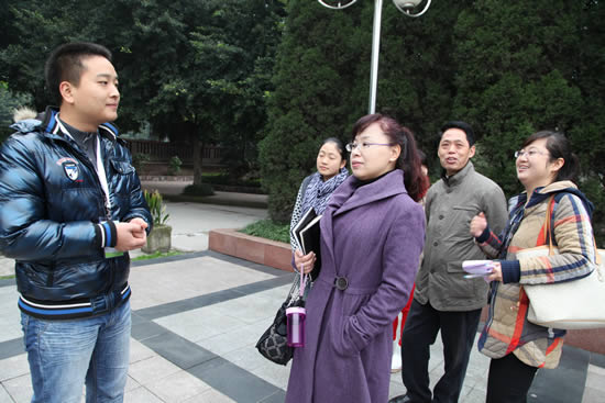 早上八点整,我院代表们在行知技师学院负责带队的老师及该院10春市场营销(中专)班的同学们的引导下,参观了该校学生独具特色的户外晨读。接下来的时间里,代表们参观了该院的体育馆、教学楼、实验楼、学生作品陈列室、古董室、校园文化社团展室、烘焙专业学生实操车间,以及学生公寓和食堂。整个参观考察过程中,通过行知技师学院的带队老师与同学们热情、细致地讲解,使我院代表较为全面、生动地了解到行知技师学院的基本概况,以及该院推行的“生活即教育”、“社会即学校”、“教学做合一”教育理念是如何在日常教育教学中具体实践的。