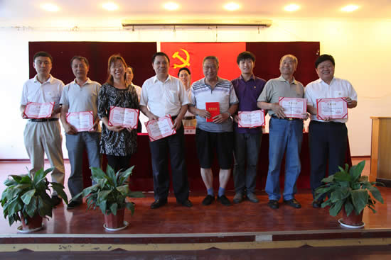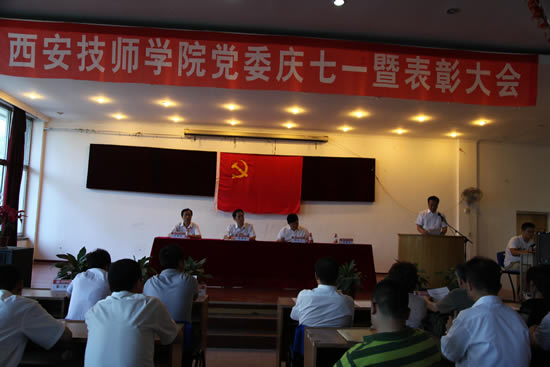 李长江院长在会上宣读了2012年度西安技师学院七一表彰决定,共2个基层党支部、3个共产党员示范模范岗和19名先进个人及3名优秀党务工作者获得荣誉。会议上,优秀党支部书记代表田玉芳、教师优秀共党员代表门新会、学生党员代表魏程鹏进行了汇报发言,他们就自己一年来的收获进行了分享,对学院、全体教职工表达了敬意,向党的华诞送上了祝福。