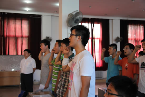 学院2012年度新发展的学生党员们怀着无比激动的心情在党办主任杨礼瑚的领誓下面向党旗进行了庄严宣誓,坚定了大家永远跟党走的决心。