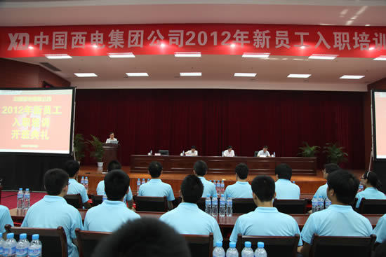 2012年7月26日上午8时,中国西电集团公司2012年新员工入职培训开班典礼在西安西电变压器有限公司会议厅隆重举行。参加本次开班典礼的领导有:集团公司组织干部部、人力资源部部长崔虹、副部长赵辉、西安技师学院院长李长江、副院长王德意。