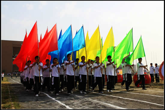 上午8:30,伴随着激昂的《运动员进行曲》,在院旗仪仗队的引领下,国旗队、花束方队、彩旗方队、裁判员方队、各系方队依次入场。他们步伐整齐、口号响亮、身姿矫健、创意独特,展示了运动风采,显示了创新能力,成为开幕式上一道道靓丽的风景。