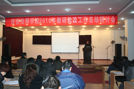 在总结研讨会上副院长王德意向参会人员传达了《国家中长期人才发展规划纲要》、《国家中长期教育改革和发展纲要》以及人力资源和社会保障部《关于大力推进技工院校改革发展的意见》等相关文件精神。教务处、督导室、各系室对2010年教研教改工作进行了总结交流,门新会等5名教师在大会上进行了典型发言。随后,由党委副书记纪委书记袁建章宣读学院第二届“创意杯”表彰决定,对获奖人员进行表彰。最后,院长李长江做了题为《创新课程教学体系培养企业需要的技能人才》的主题报告,介绍了新形势下企业转型对于技能人才需求的特点及创新课程教学体系的思路及方法,要求学院全体教职工积极行动起来,深入细致,创造性地推进我院教研教改工作。