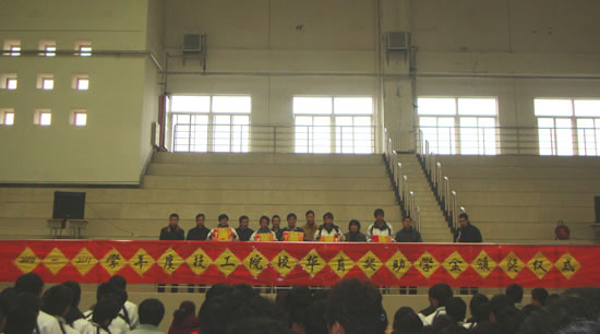 学院副院长贺惠民和党委副书记纪委书记袁建章在颁奖仪式上向同学们提出了殷切希望:希望同学们心存感激,坚强乐观,克服困难,顺利完成学业,回报促使自己健康成长的师长和社会;希望同学们志存高远,发奋读书,苦练技能,将来以所学之长为祖国现代化建设建功立业!