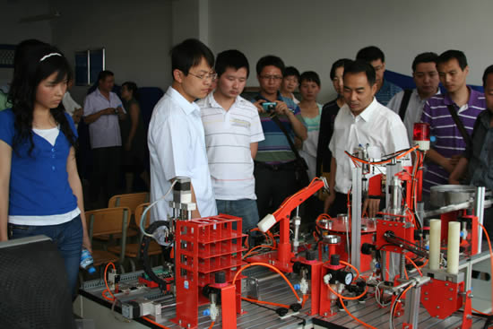5月29日下午,人力资源和社会保障部教材办公室与陕西省技工学校指导中心联合举办的技工院校数控专业教材教法师资培训班成员一行40余人,在人力资源和社会保障部教材办公室相关领导以及省技工学校指导中心张艺老师的带领下来我院参观交流,学院副院长王德意、贺惠民接待并参加了座谈会。