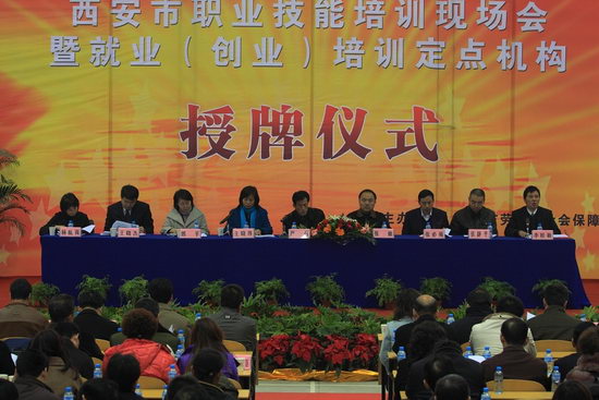 为深入贯彻市委、市政府关于整合就业培训资源的工作部署,落实市政府《关于进一步加强就业培训工作的意见》,推动就业(创业)培训项目实施,做好西安市职业技能培训鉴定工作,市劳动和社会保障局于11月13日下午在我院咸阳新校区文体餐饮中心召开西安市职业技能培训现场会暨就业(创业)培训定点机构授牌仪式。