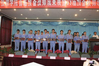 预备技师培养制度是国家为解决企业急需技师为目标,以校企合作为纽带,以分阶段培训和考核为特征的新型高技能人才培养制度,更是加快院校高技能人才培养的一项重大尝试。这次陕西省首届27名预备技师通过在400余名高级工中选拔、培养、考核,顺利地完成了学业,取得了预备技师证书。这标志着西安技师学院在预备技师培养探索方面走在了全省的前列,并取得了可喜的成绩!陕西省劳动和社会保障厅副厅长沙德宪在成果展会上指出:西安技师学院作为中国西电集团举办的一所历史悠久的技工院校,在校企合作培养高技能人才方面具有得天独厚的优势。该院创办的高级工大专班,实现了高等职业教育与高等学历教育的有机结合,在全省起到了示范和推动作用。在院校预备技师培养中,学院开发出了以职业功能模块为核心,实行工学结合,既是校企合作培养高技能人才的重要成果,也是院校高技能人才培养模式的一种尝试或突破。会上学院院长李长江分别从学院预备技师班开设基本情况、预备技师培养方案、教学模式与评价体系三个方面介绍了高技能人才培养的情况。此次成果展共展出电梯控制、交通灯、人流量检测装置、皮带分检传送、四柱式气动压力机、自动测速系统、单工序落料模、防盗数字密码锁、机械手、数控铣床等40余件毕业设计成果,许多用人单位前来观摩,对预备技师毕业设计成果赞不绝口。