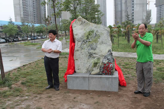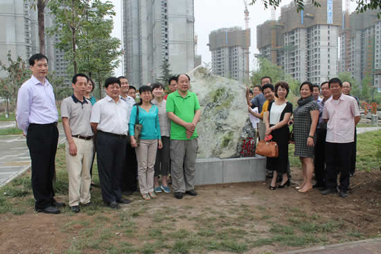 随后,李院长和校友代表吴俊为景观石揭牌,并与校友代表合影留念。