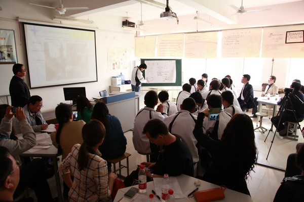 课后,袁红旗老师向参加观摩课的各位老师阐述了他的教学思路和教学方法,并与各位老师对本节课的效果进行了真诚地切磋和交流。同行老师们对袁红旗老师的授课方式和效果给予了极大的肯定,并且提出了一些宝贵的教学建议。