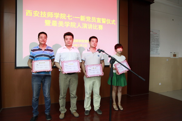 7月1日,西安技师学院党委在C座302室召开“最美学院人演讲比赛”。学院党委书记李长江、纪委书记袁建章、副院长王德意出席了大会。