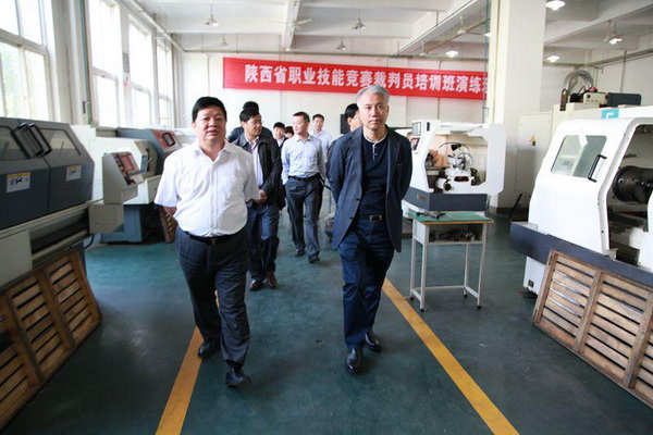 院长李长江、副院长赵辉、院长助理冯小平及有关部系负责人陪同客人参观了学院的一体化教室、创意室、生产实训中心、图书吧等处场所,认真观看了预备技师的创意作品。