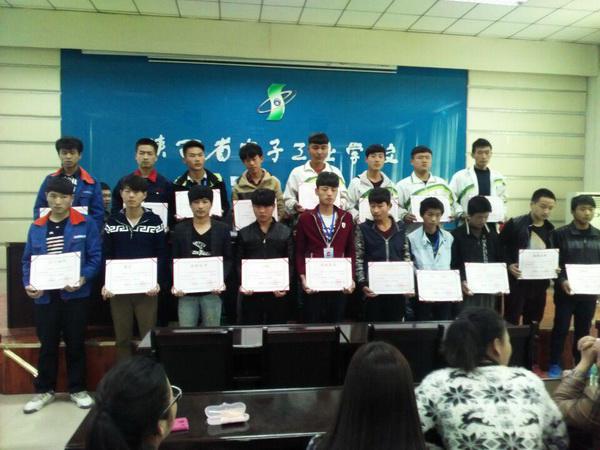我院获奖选手在陕西省电子工业学校颁奖典礼上。