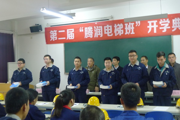开学典礼上,首届“滕润电梯班“优秀学生代表介绍了参加电梯班课程对自己的工作以及生活的影响,总结了自己的学习经验并对第二届”滕润电梯班“的学生提出了要求与期望;第二届”滕润电梯班“的学生代表在发言中明确表示了在”滕润电梯班“的培训过程中会努力学习,不辜负领导与前辈的殷切希望。最后,由与会的领导为大家分发学习资料。