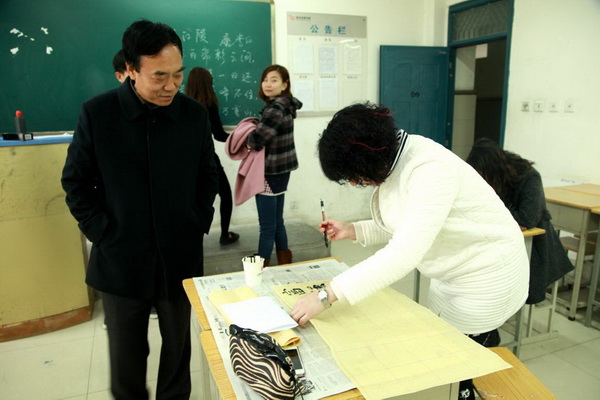 现场评委从字体结构、章法布局、完整、美观、艺术性等几个方面进行评定,三项比分相加,评出团体第一、二、三名,学院领导为前三名颁发了奖状和奖品。