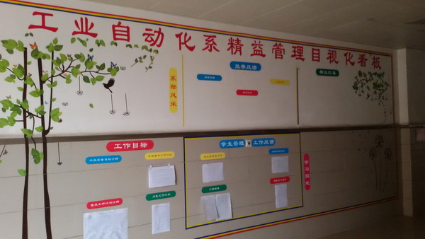 为进一步提高教学管理水平和质量,积极响应“两会”中提质增效的号召,工业自动化系自开学以来,始终坚持精益改善,设计并完成了工业自动化精益管理目视化看板,并于2016年3月投入使用。