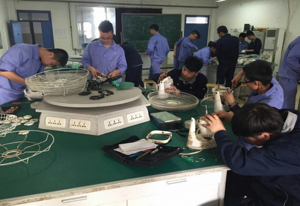 此次的维修任务主要由工业自动化系第二届兴趣小组的同学承担,在班主任张璇老师的组织分配和刘秀权老师的讲解指导下紧张有序的进行着。在维修过程中,同学们热情高涨,积极认真,通过对风扇的清洗、故障检查分析、拆装和维修调试,不仅了解了电动机的基本机构和工作原理,掌握了故障检修的方法和技巧,更真切的体会了学习带来的乐趣。看着一台台原本已经无法工作的废旧风扇顺利地工作起来,同学们满满的成就感,越干越起劲,下课都不愿意回去,直至全部任务的完成。