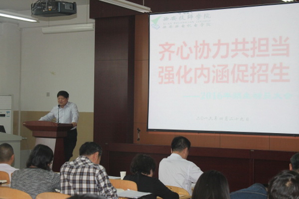 2016年4月29日下午,学院在咸阳校区C座302室召开了2016年招生动员大会。院领导及全体教工参加了本次大会,大会由副院长杨广明主持。