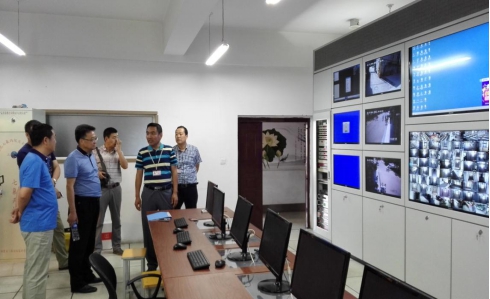 西安技师学院杨广明副院长(左二)在太原技师学院副院长张建农(右二)陪同下参观学院网络监控中心