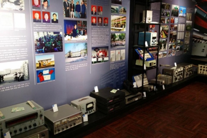 西安技师学院杨广明副院长(左三)在山西冶金技师学院副院长(左二)白金福陪同下参观学院展室
