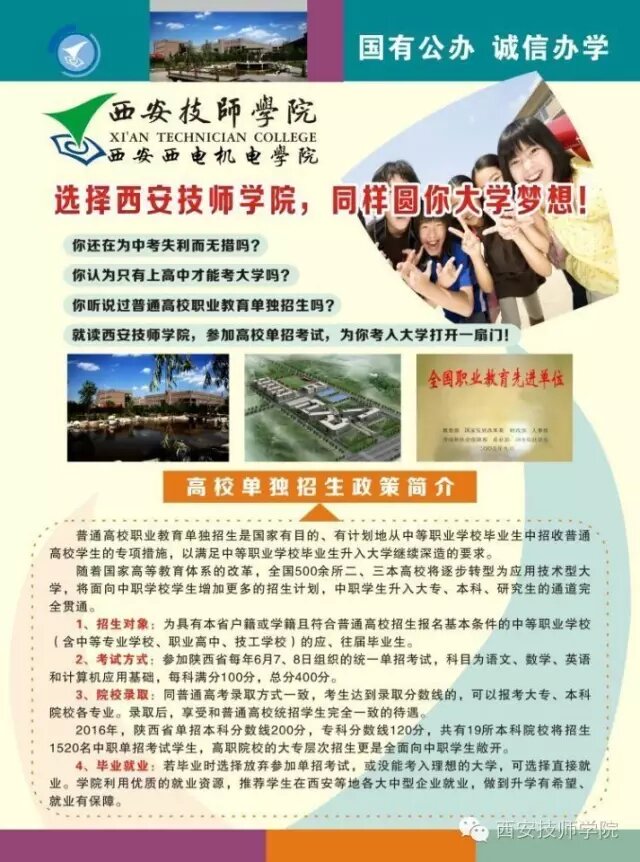 选择西安技师学院,同样圆你大学梦!