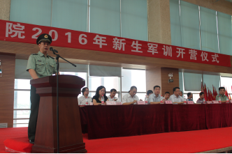8月24日上午,我院2016年新生为期九天的军训活动拉开序幕。上午九点,军训开营仪式在文体中心二楼举行,副院长杨广明、赵辉、陕西省军区君威训练基地主任杜晓健及各部门领导出席了开营仪式,仪式由学生工作处处长崔嵬主持。