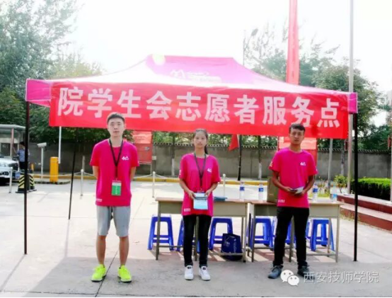 “请走这边。您好!车请往里面开,操场有位置。”一个高年级的学生,在负责引导送新生的私家车停车。一早,志愿服务者早早地来到服务点,为前来报名的新生服务。看到他们脸上、背上都是汗水,脸上始终微笑着,觉得他们就是最可爱的人!
