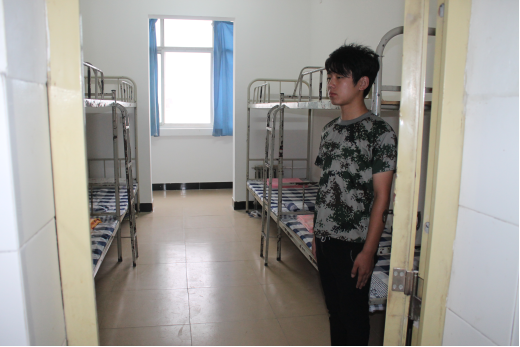 学生在认真的整理内务