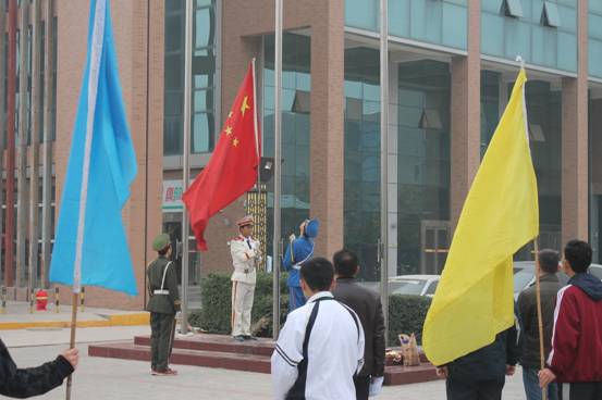 开幕式第一项升国旗,全体人员奏唱国歌