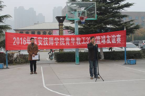 为了进一步丰富我院青年教职工的业余文化生活,增强老师的身体素质,增进部门之间的交流,学院团委于11月18日下午在学院篮球场举办2016年青年教工3V3篮球友谊赛开幕式及揭幕战,参加本次活动的有学生工作处崔处长、李副处长、汽车工程系贾主任、信息与艺术系王主任、各参赛队员、院学生会志愿者共计80余人。
