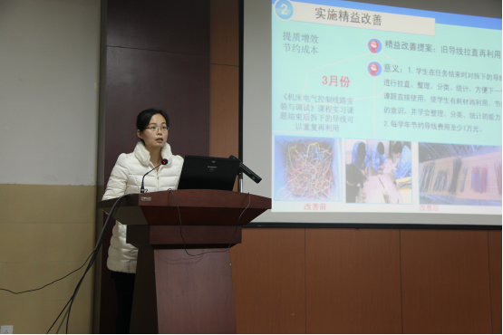 会上,精益办主任高健全面总结了2016年度学院精益管理及持续改善工作取得的成果,提出2017年精益管理工作要点,全体人员观看了精益管理推进视频;杨广明副院长宣读了学院表彰精益改善先进集体及先进个人的决定,随后学院领导为2016年度精益管理及改善提升工作中表现突出、成绩优异的部门及个人颁奖;工业自动化系主任吕国贤、机械工程系教师马江涛等向大家分享了精益改善经验。