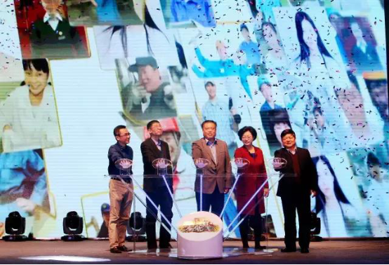 参会领导上台点亮手印共同启动《中国大能手》第三季