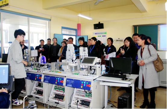 会前,与会的技工院校校长、教务、资助等工作人员分为两组,观摩考察了学院高压电器培训中心、精益培训中心、豪特生产实训中心等地。