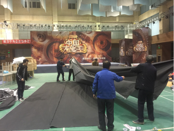 因中央电视台《中国大能手》栏目组拍摄要求,需对3D打印决赛整个主会场进行遮光处理,我院后勤处承接了此项工作。