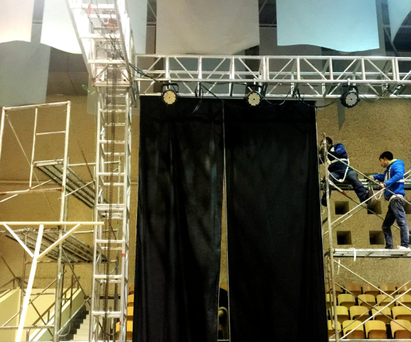 4月10日下午,在后勤处主任杨坤的带领下,维修组人员全体出动,开始对整个现场进行遮光处理。一条一条的遮光布要经过测量、裁剪、拼接、安装、调整等工作流程才能正常使用。由于工作量大,任务繁重,大家撸起袖子加油干,直至4月11日凌晨3点,对直播现场800多平方米空间进行了遮光处理。(图文:后勤处 魏鑫)