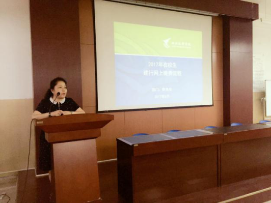 财务处负责人祝晖介绍了学院建立网上缴费平台的重要性和必要性,明确学院今后缴费工作需要借助安全便捷的网络平台。