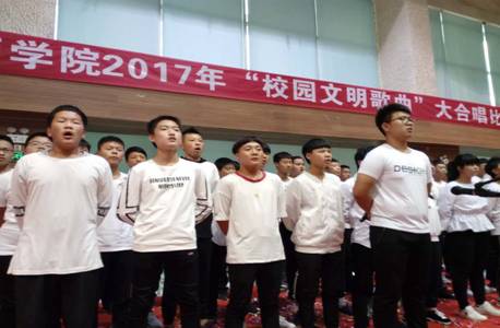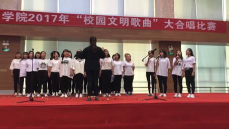 为抒发学生的爱国情怀,加强爱国主义教育,弘扬中华美德,充分表达广大师生热爱党、热爱祖国的深厚感情,丰富学生文化生活,创建文明校园,增强班级凝聚力,提高学生的艺术素质,展示我院师生的精神风貌和良好风采。2017年9月28日下午,学生管理服务中心组织全院学生举办2017年文明歌曲大合唱比赛。本次大赛由2017年秋季入学的新生班级和部分老生班级组建的13个合唱队参加,学院教学部门和部分职能部门的负责人观看了比赛。
