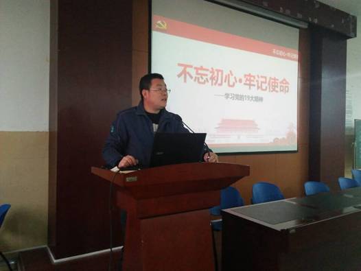 全体人员观看了中共中央总书记习近平同志代表第十八届中央委员会向大会作报告的视频节选,了解了党的十九大不忘初心,牢记使命,高举中国特色社会主义伟大旗帜,决胜全面建成小康社会,夺取新时代中国特色社会主义伟大胜利,为实现中华民族伟大复兴的中国梦不懈奋斗这一核心主题。
