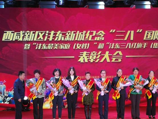 沣东新城领导为三八红旗手颁奖,左起第三为李秀梅同志