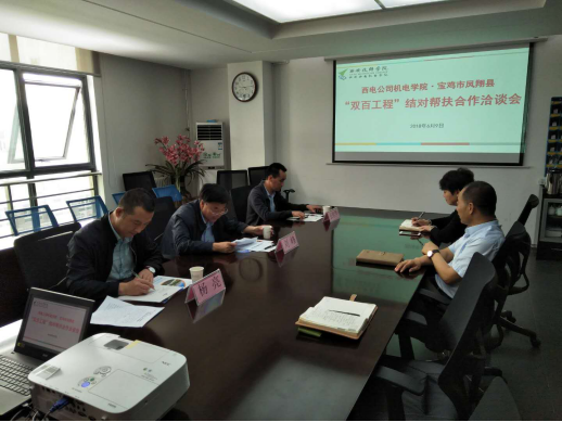 宝鸡市凤翔县刘局长县长一行,来我院开展“双百工程”结对帮扶合作洽谈会座谈会上,冯小平副院长对刘局长一行来到我院进行交流座谈表示欢迎,双方介绍了与会人员。冯小平副院长向客人介绍了我院基本情况和办学优势,他讲到,学院高度重视“双百工程”,今年高考刚结束,中考也即将到来,学院履行帮扶责任,接收凤翔县贫困适龄学生到学院就读,希望凤翔县组织有就读中职、高职意愿的凤翔县学生就读我院,学院制定凤翔县户籍贫困学生就读我院学费减免办法,帮助贫困家庭学生完成学业。学院也乐意为凤翔县中学建“创意室”,开展“劳技课”进校园活动,也欢迎凤翔县中学来我院开展游学活动。