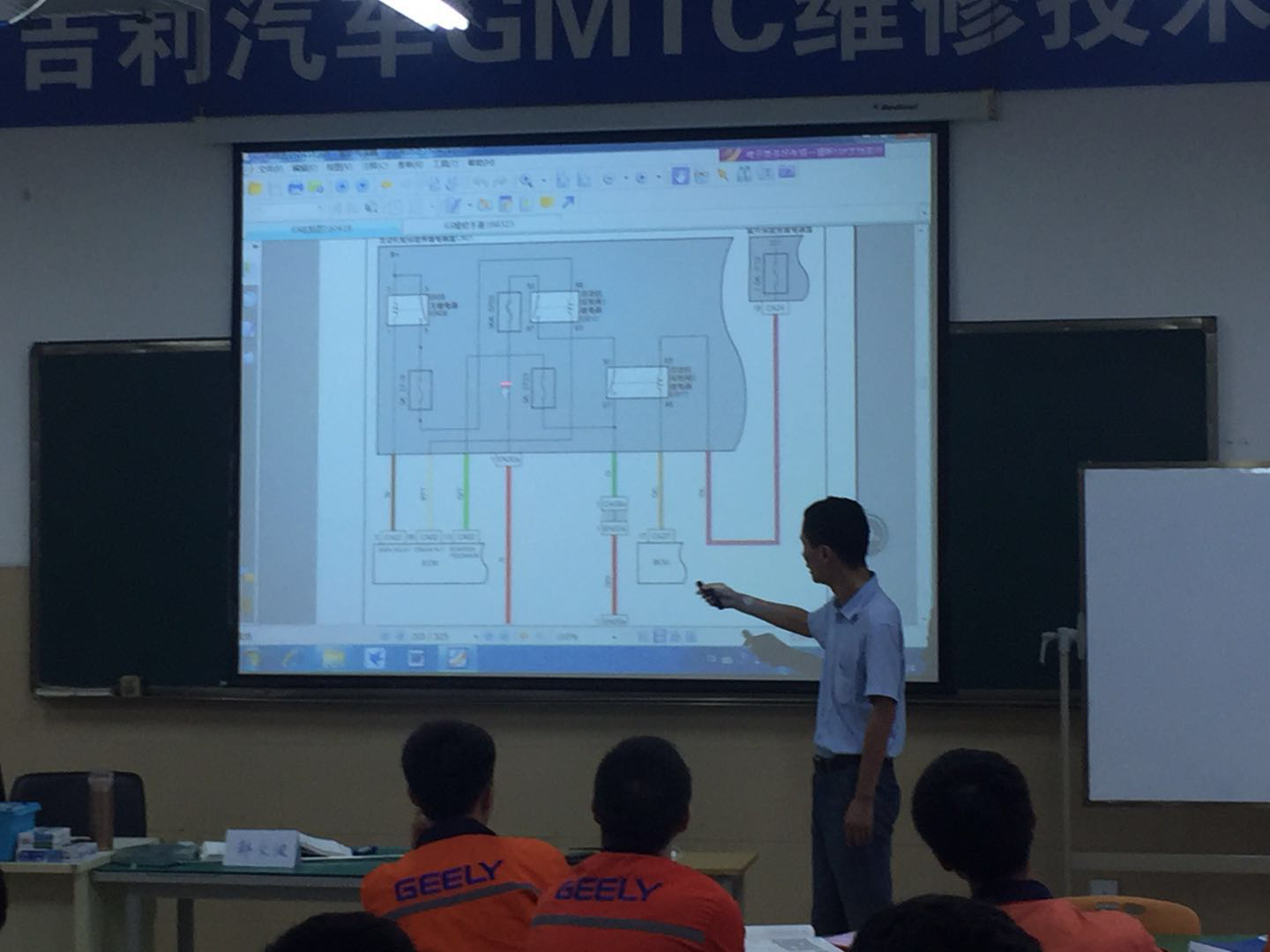 本次培训的教学工作由现代服务系韩文波老师承担,培训内容主要以新能源汽车检测及汽车电控系统维修为主,培训中采用理论与实践相结合的模式,系统学习吉利插电混动汽车检修、汽车电路图的分析及维修手册的使用,并结合实车通过设置故障、电路的分析、制定维修计划、故障维修四个环节进行反复训练提高学员的故障排除能力,同时在培训中对学员在维修中一些疑难案例进行剖析,讲解诊断方法,便于以后工作中提高车辆的维修质量。