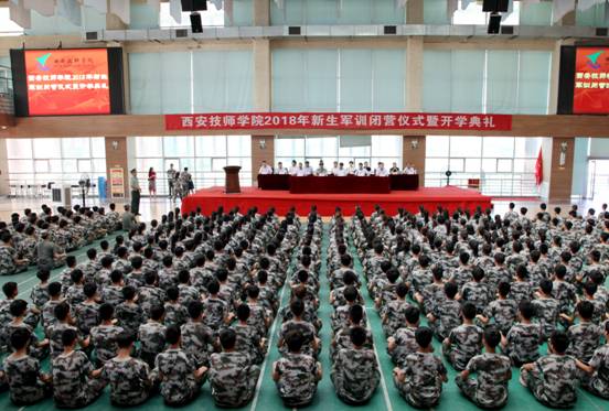 8月30日,西安技师学院2018年新生学子身着迷彩正襟危坐,参加学院军训闭营仪式暨开学典礼。学院领导班子、各部门负责人、学管、班主任等出席活动,与新生共同聆听“开学第一课”。
