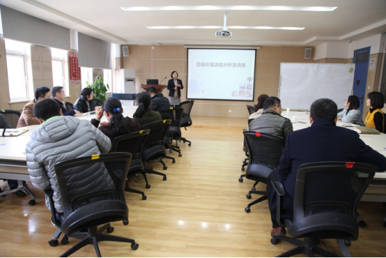 11月28日下午,学院精益管理办公室组织开展了内容为“简易价值流程分析及改善”精益管理专题培训,参加培训的包括全体中层干部、各部门主管及教研室主任、部分业务人员共计60余人,由学院内训师惠晓妮老师主讲。