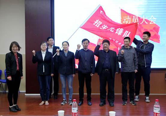 会上,招办副主任易海英汇报了学院2019年招生工作实施方案,并解读了2019年招生管理办法;机电技术系主任张琳娜、现代服务系教师常薇分别代表所负责的招生区域进行表态发言,分享了招生过程中的经验与感悟。学院领导分别为三个招生片区负责人进行授旗。分管招生工作的冯小平副院长对2019年招生工作提出明确要求:一是全体教职工要从思想上高度重视招生工作;二是要分区域组织实施,各区域要制定切实可行的招生方案,强化责任制考核;三是要创新招生宣传模式,多途径开辟招生渠道,充分利用线上线下开发新的生源地和生源学校;四是招生过程中要发扬主人翁意识,主动了解家长和学生的实际需求,及时做好咨询服务工作。