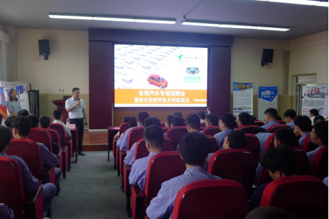 2019年5月27日,现代服务系与浙江吉利汽车销售有限公司联系,面向学院汽车维修专业学生召开吉利汽车专场招聘会。陕西德丰、陕西万顺、陕西星海、陕西意林、陕西益新源、西安时代之星、西安辰宇、西咸新天路等八家吉利汽车服务站参会,现代服务系组织高级工大专班应届毕业学生一百余人参加。