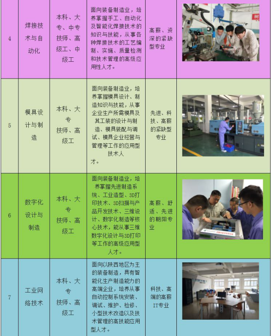 机电技术系是学院历史最悠久、规模最大、办学特色鲜明、实力雄厚的教学系之一,是面向装备制造业培养高技能人才的重点建设系部,开设有以机电类为主体方向的专业群,重点专业有数控技术、数字化设计与制造、模具设计与制造、焊接技术与自动化、电气自动化技术、机电一体化技术、楼宇自动控制设备安装与维护、工业网络技术等,其中数控技术、电气自动化技术、模具设计与制造等专业均评为陕西省名牌专业。是世界技能大赛“机电一体化”、“电子技术”陕西省选拔训练基地,系部拥有一支兼备“陕西省技术能手”、“陕西省首席技师”、“中国大能手3D打印全国总冠军”、“陕西省教学能手”、“陕西省技术状元”等荣誉称号的双师型专职教师队伍,其中本科及硕士以上学历占90%,中高级职称占68%,具有技师及以上职业资格者占57%,实训设备共计3000多台/套,先后培养出获得“全国五一劳动奖章获”、“陕西省劳动模范”、“陕西省技术能手”、“西安市劳动模范”、“西安工匠”等荣誉称号的众多优秀毕业生。