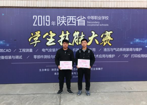 (3)我院电气技术系学生耿佳滨、何星参加2019年陕西省中等职业院校学生技能大赛电气安装与维修项目获得“二等奖”。