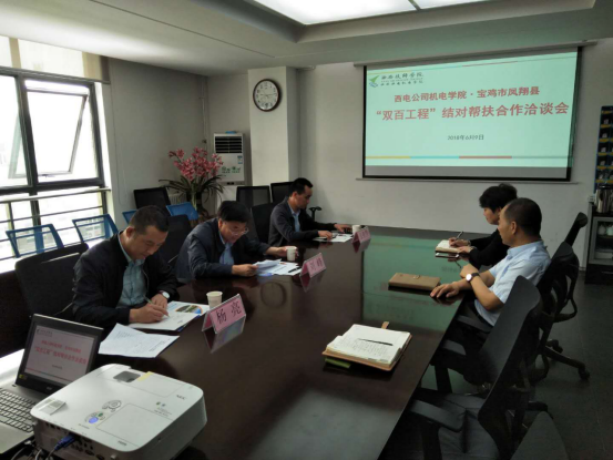 1.2017年9月25日下午,宝鸡市凤翔县贾副县长、教体局刘书记、扶贫办严主任等一行5人,来我院开展“双百工程”结对帮扶合作洽谈会。学校党委副书记、副院长杨广明、副院长冯小平及部分职能部门负责人加了合作洽谈座谈会,达成对口帮扶合作意向。