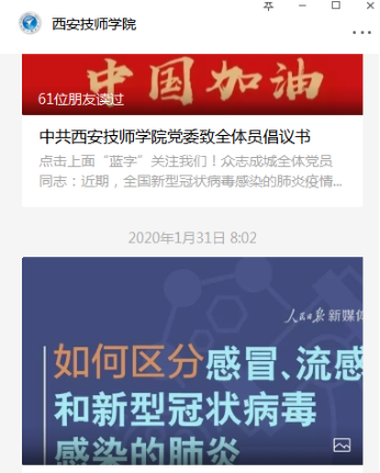 新型冠状病毒感染的肺炎疫情发生以来,西安技师学院认真贯彻落实习近平总书记关于疫情防控重要指示精神,严格按照集团和上级主管部门要求,把广大师生生命安全和身体健康放在首位,扎实开展新型冠状病毒感染的肺炎疫情防控工作。