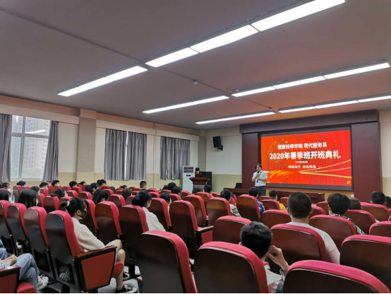 现代服务系王楠主任给本届春季班提出了新的要求新的寄托,希望他们在以后的学习生活中严于律己、力争上游。管理自我,是管理好自己的情绪管理好自己的行为。希望同学们用这个漫长而又短暂的2020年春夏,充分认识自我,悦纳自我,成为最好的自己。